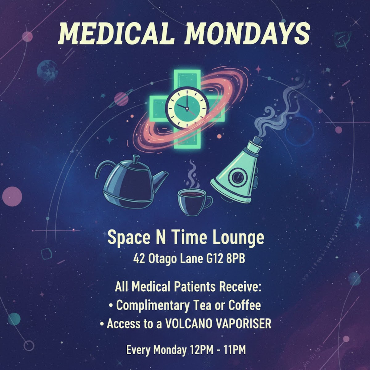 Space N Time CBD Cafe | MC Lounge | Tea House in Glasgow’s West End offers a unique blend of café, cannabis club, and community hub tucked away on Otago Lane. This is not your typical coffee stop; it’s a relaxed gathering spot where the locals come for more than just a quick caffeine fix.